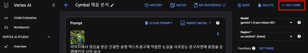 3. 위에서 생성/저장해둔 "Cymbal 제품 분석" 멀티모달 프롬프트로 이동