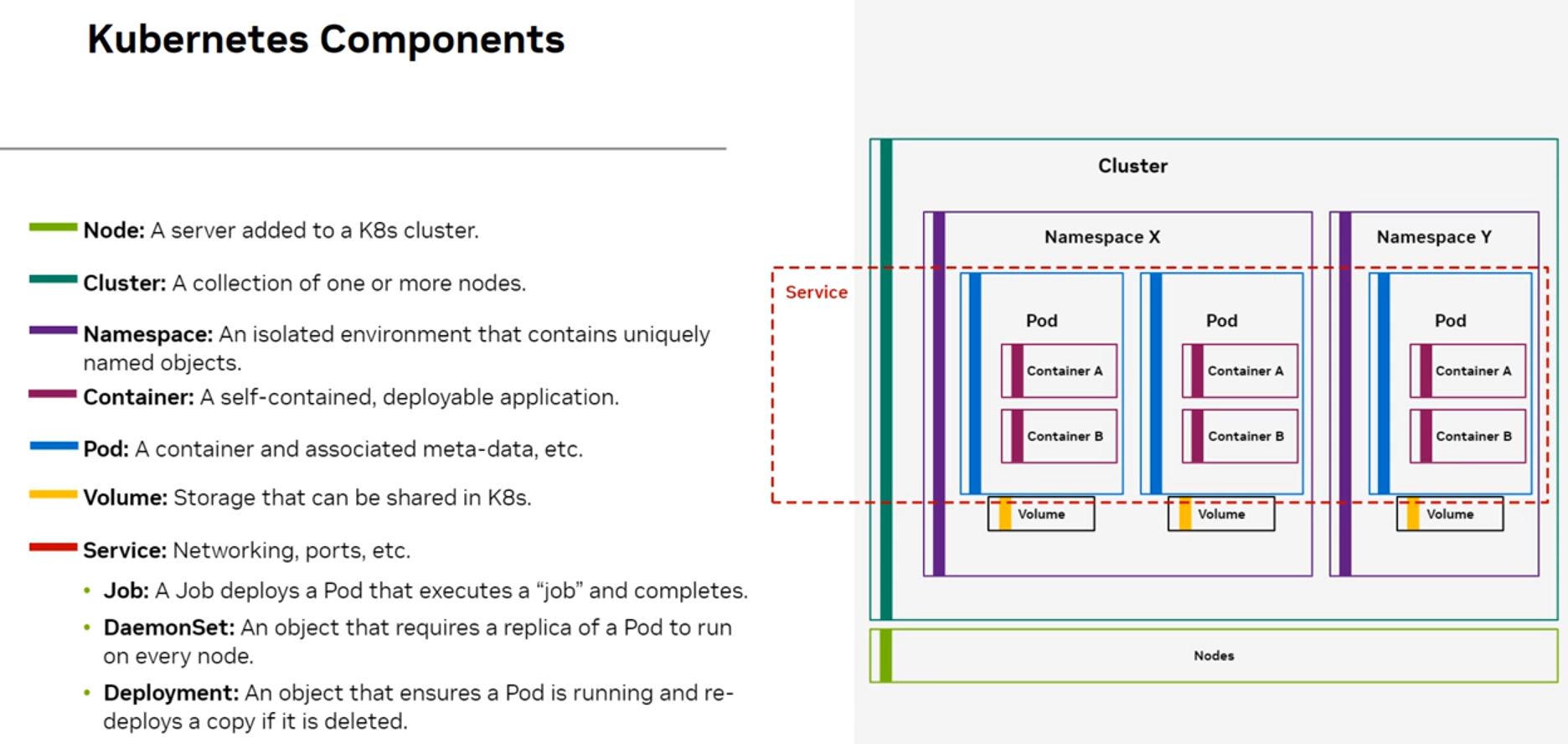 - 팟 (Pod) : 작업이 스케줄링되고, CUDA 컨테이너를 가져오는 등의 작업 수행