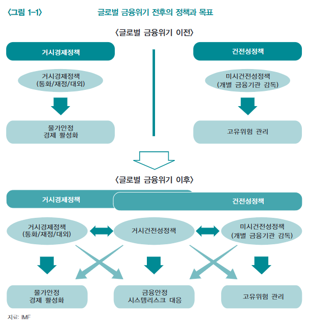 - 시스템 전체 접근법: 개별 금융기관이 아닌 금융 시스템 전체를 대상으로 정책 설계