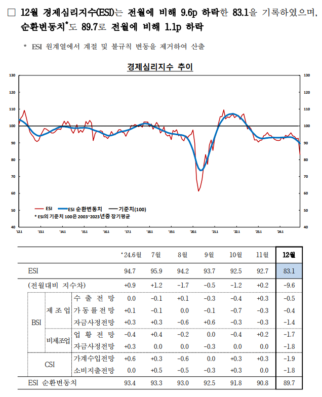 대한민국 기업경기조사 결과 및 경제심리지수 (ESI)