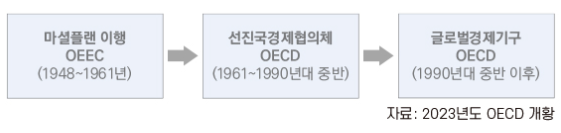 - 1961.9.30 경제협력개발기구(OECD: Organisation for Economic Co-operation and Development)로 확대 개편
