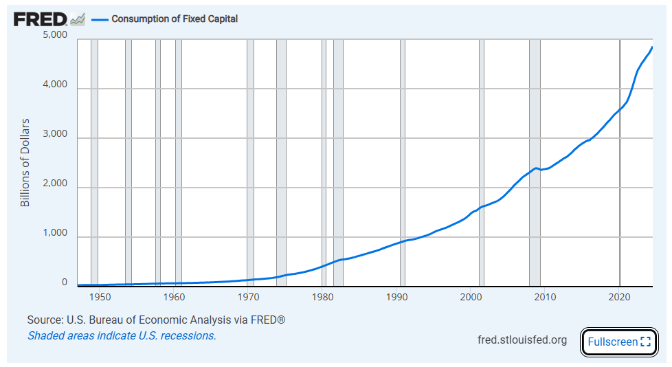$ 고정자본소모 = \sum_{i=1}^n (자산의 초기 가치 × 감가상각률)$