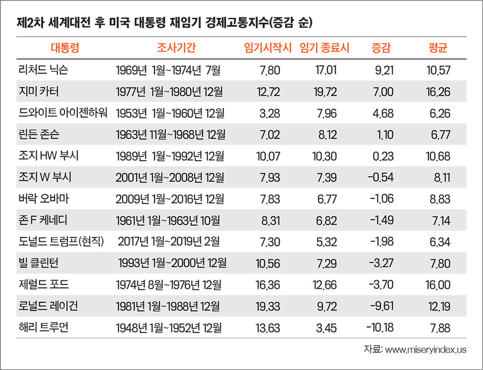 - 국민이 느끼는 경제적 고통 수준을 측정하기 위해 실업률과 인플레이션율을 합산한 경제 지표