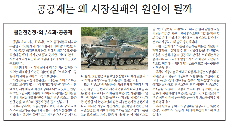 매일경제(수능 경제 돋보기) 공공재는 왜 시장실패의 원인이 될까