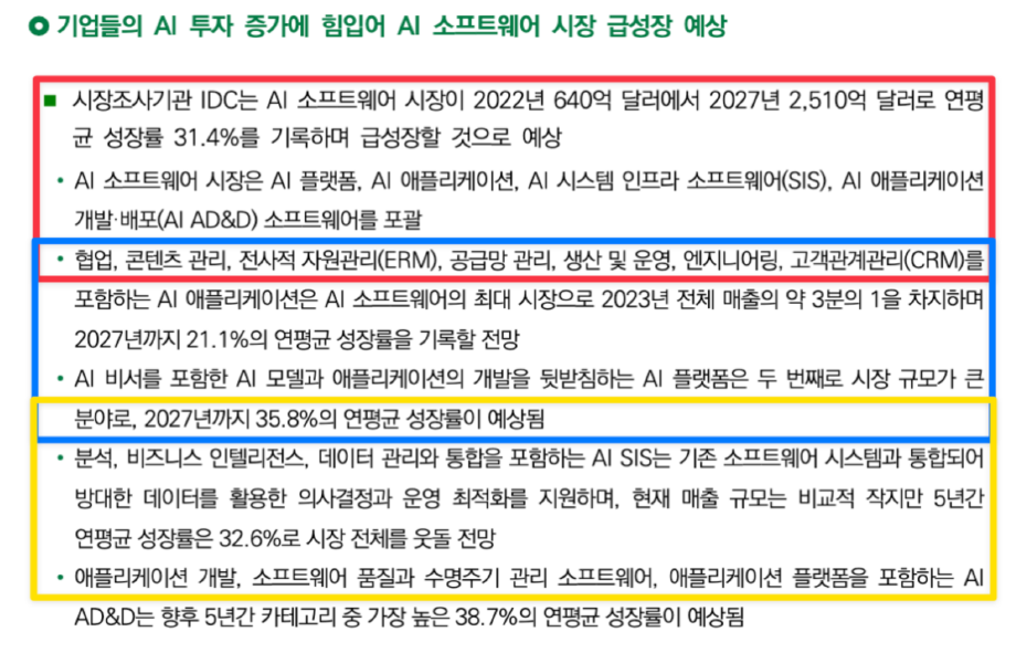 • 질문 : 시장조사기관 IDC가 예측한 AI 소프트웨어 시장의 연평균 성장률은 어떻게 되나요?