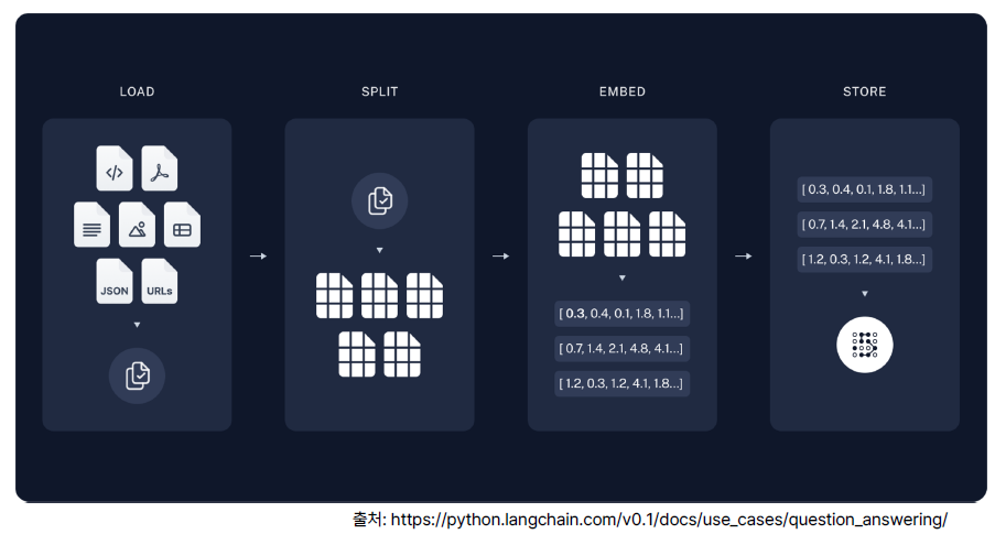 • Indexing : PDF, Word, Markdown 등에서 텍스트 데이터 추출