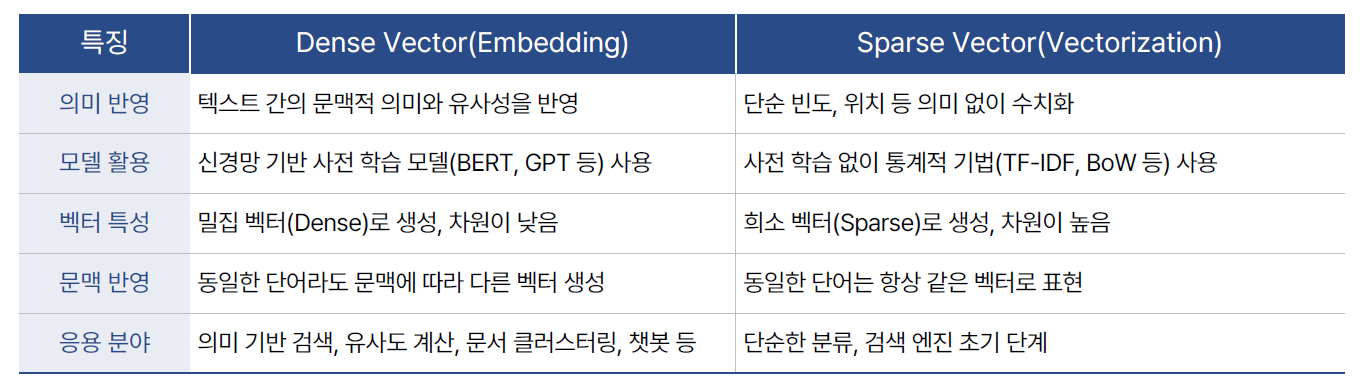 • 벡터는 텍스트의 의미와 문맥 정보를 포함
